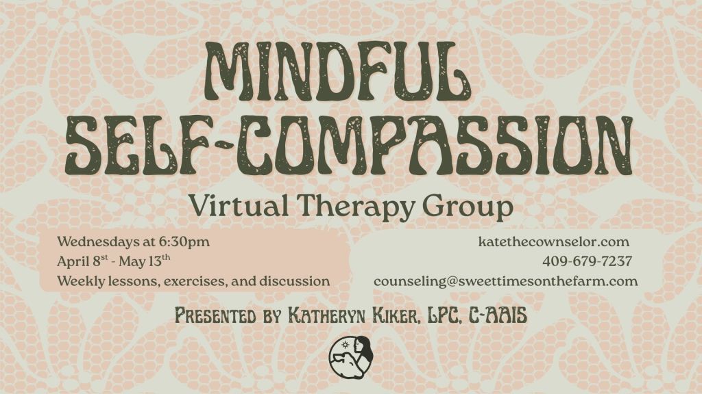 It is 6 weeks of hour long sessions with other group members where we will do group exercises, meditations, journal reflections, all with interventions meant to address self-compassion. If you do join, you will be expected to attend each week, though there is no penalty if you must miss a session.